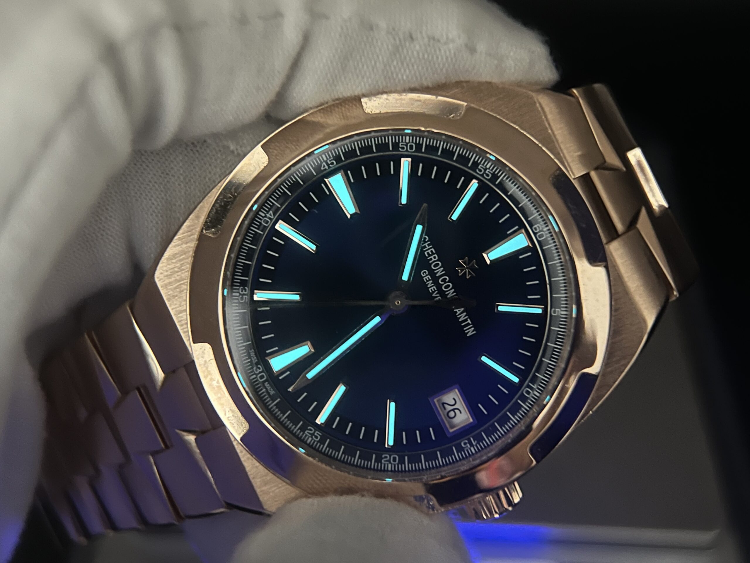 272 grams Overseas 4500V Tungsten shell Case Blue Dial on RG Bracelet A5100