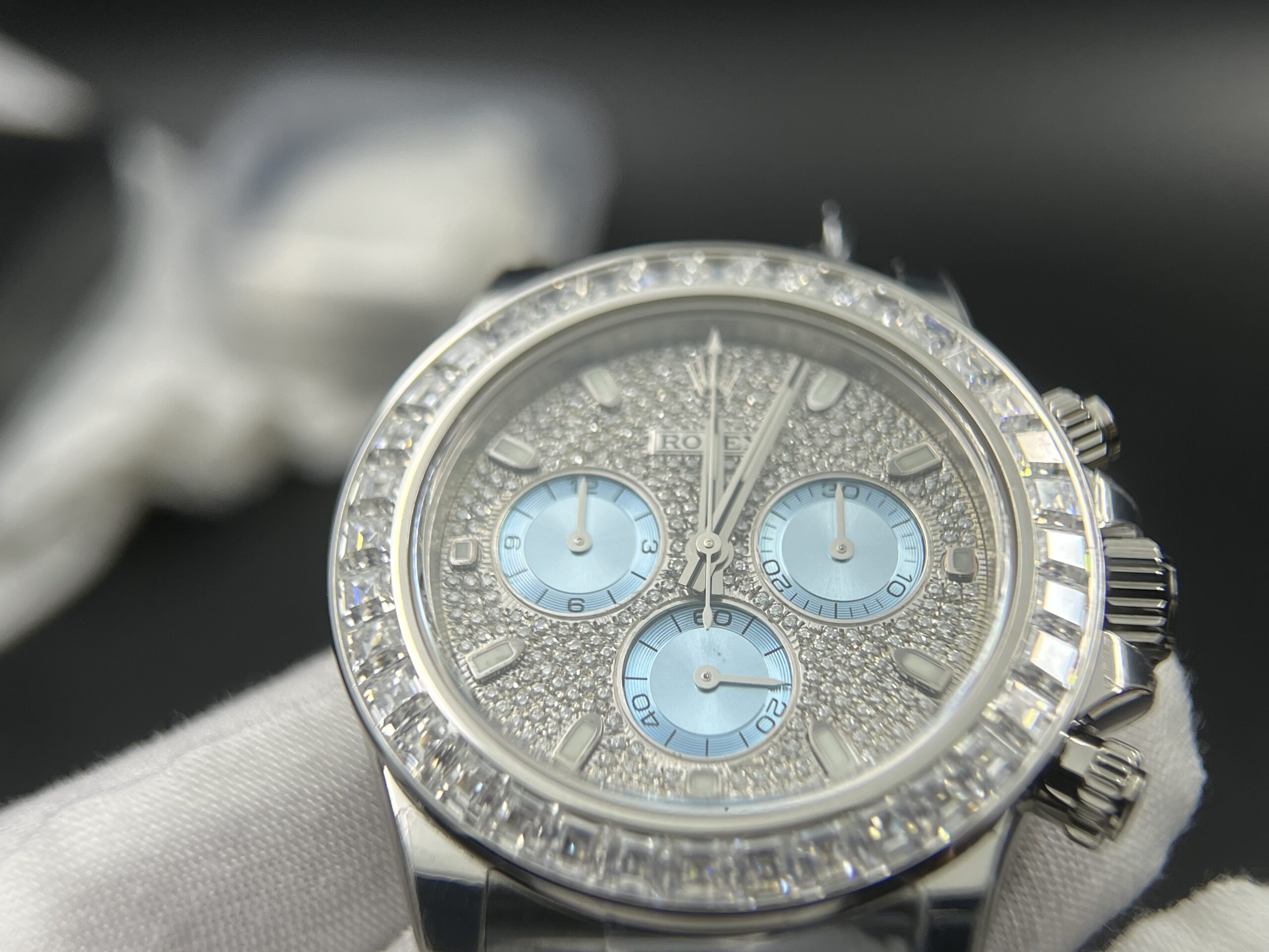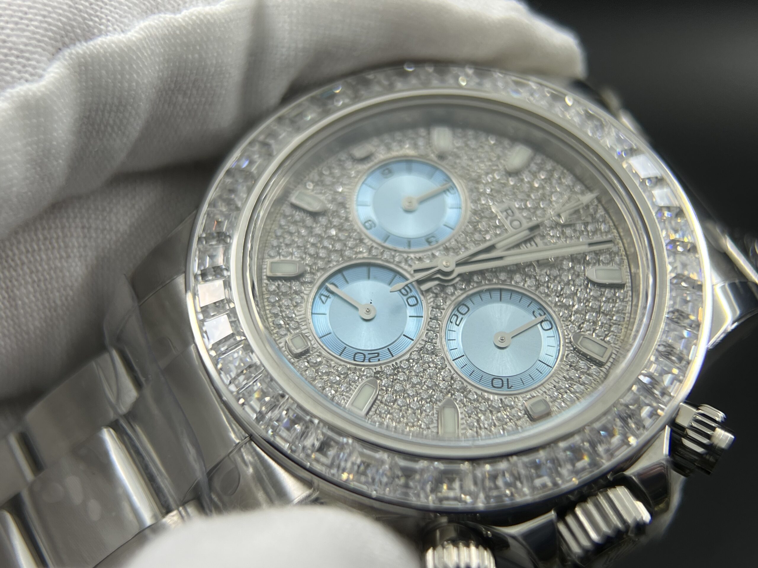Crystal:Scratch-proof sapphire crystal with semi-invisible crown etched at 6:00 position of the crystal (same as genuine and this is the first of its kind, one revolutionary breakthrough of the Rolex replicas)