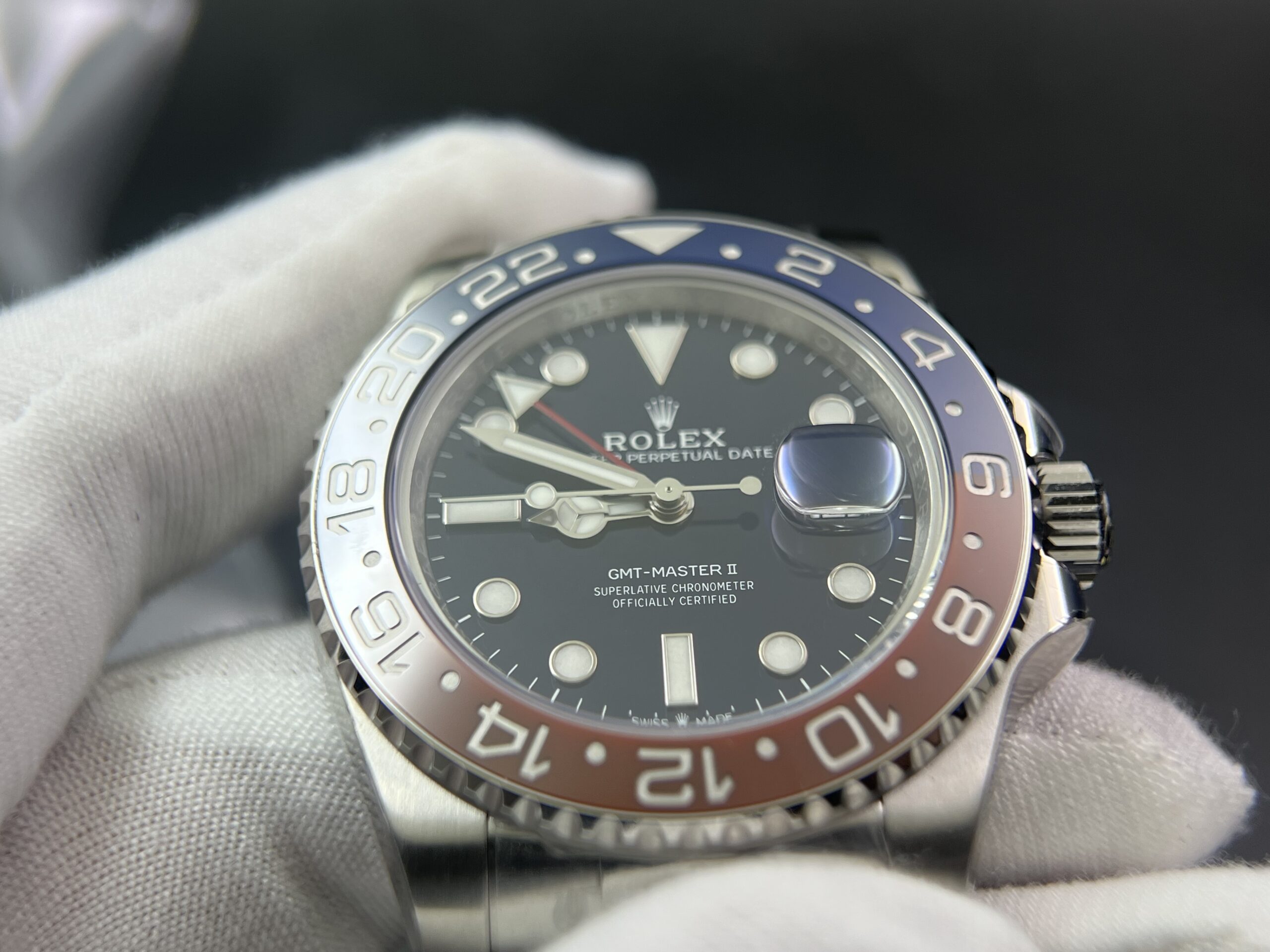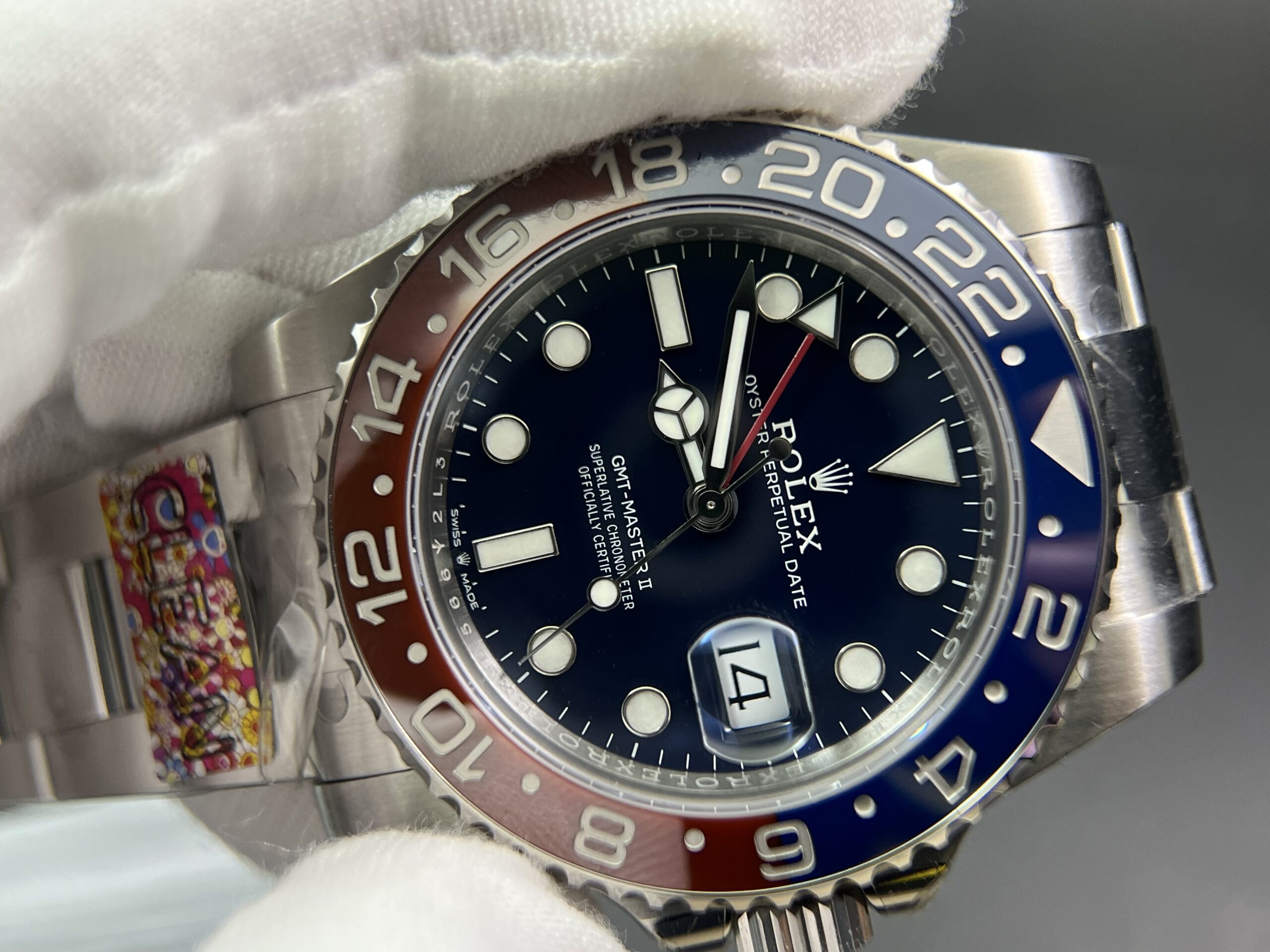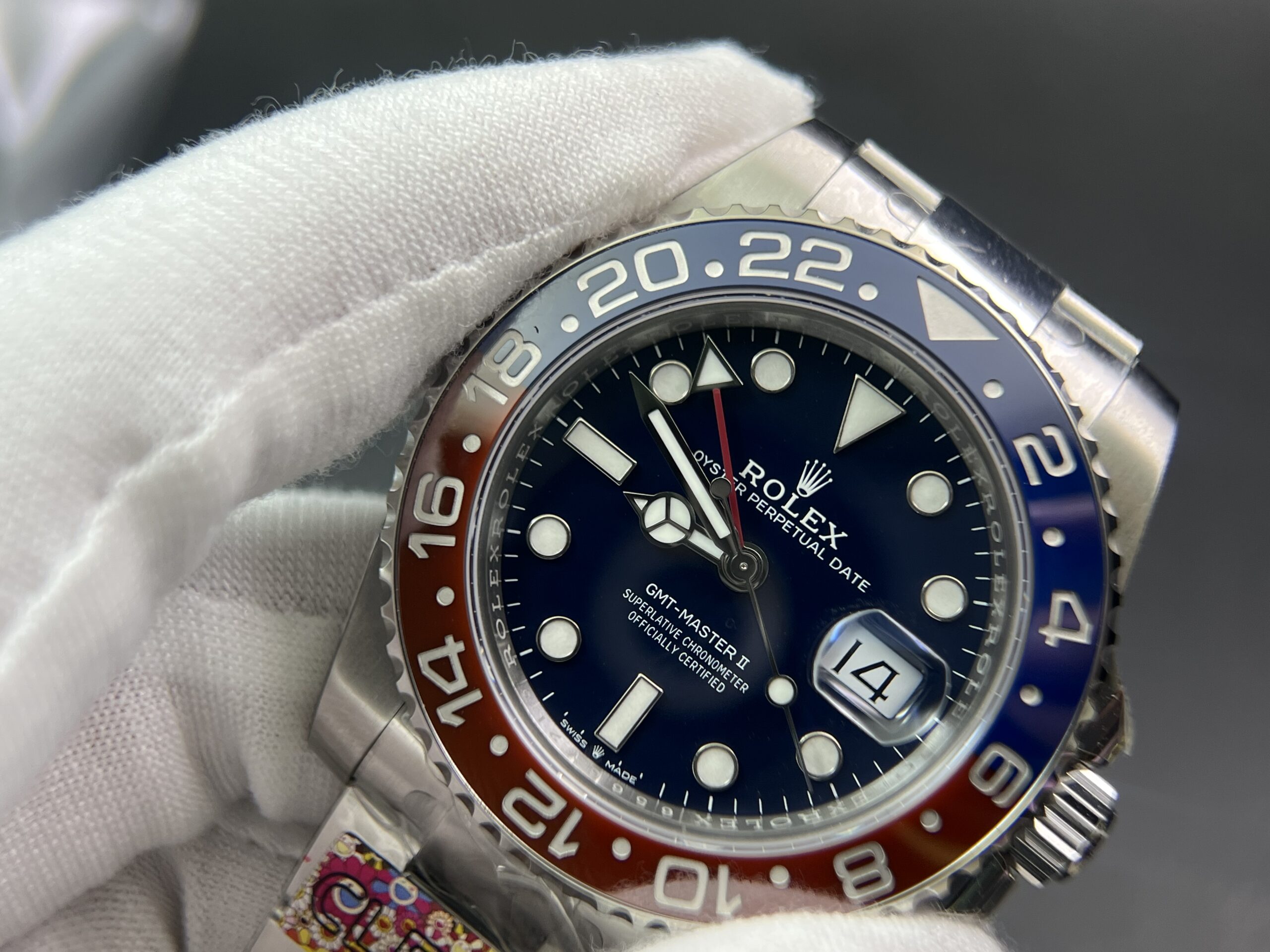 Bezel: Red/Blue Ceramic Bezel with Platinum coated numerals (CF Newest Version Pepsi Bezel)