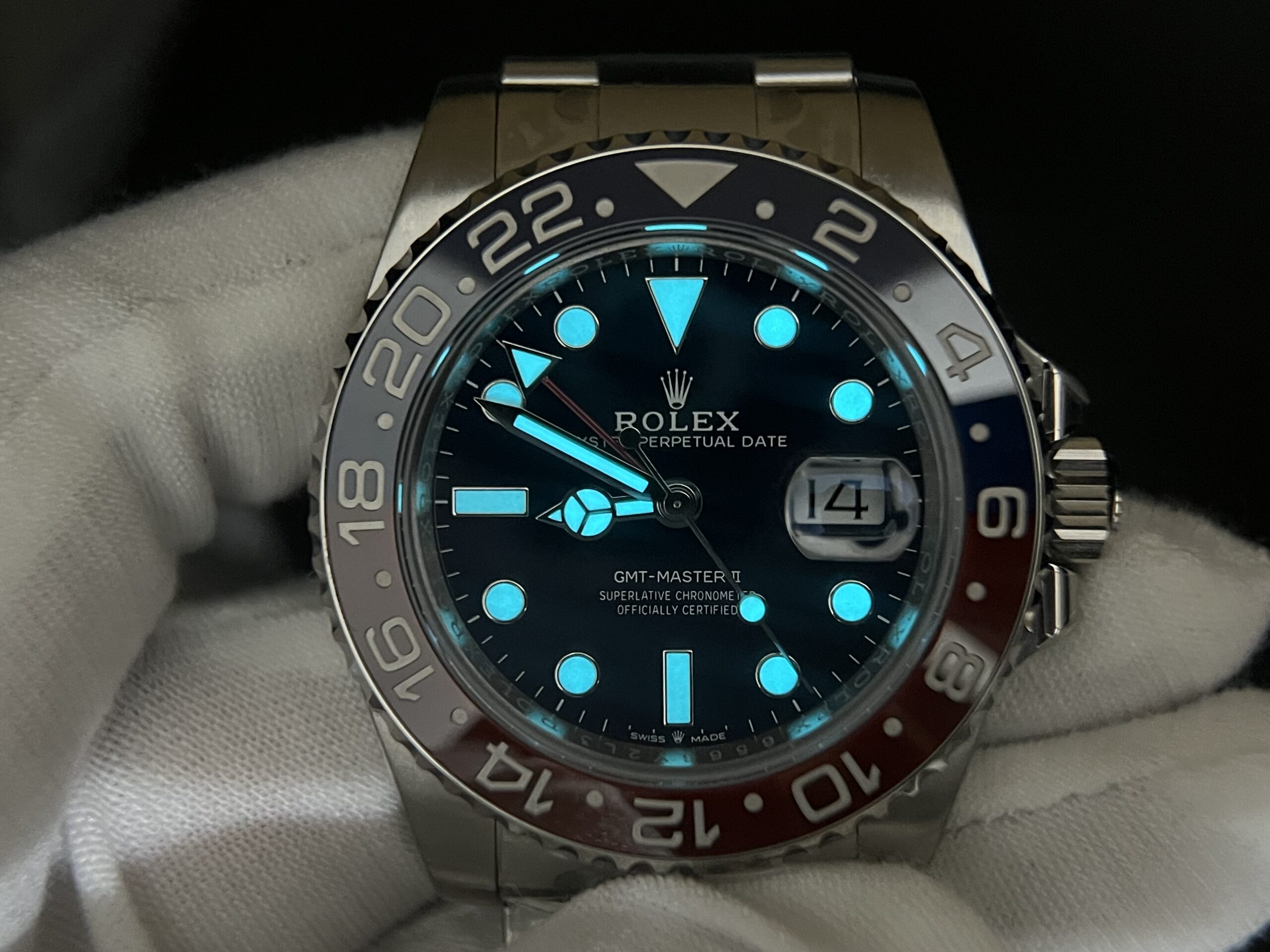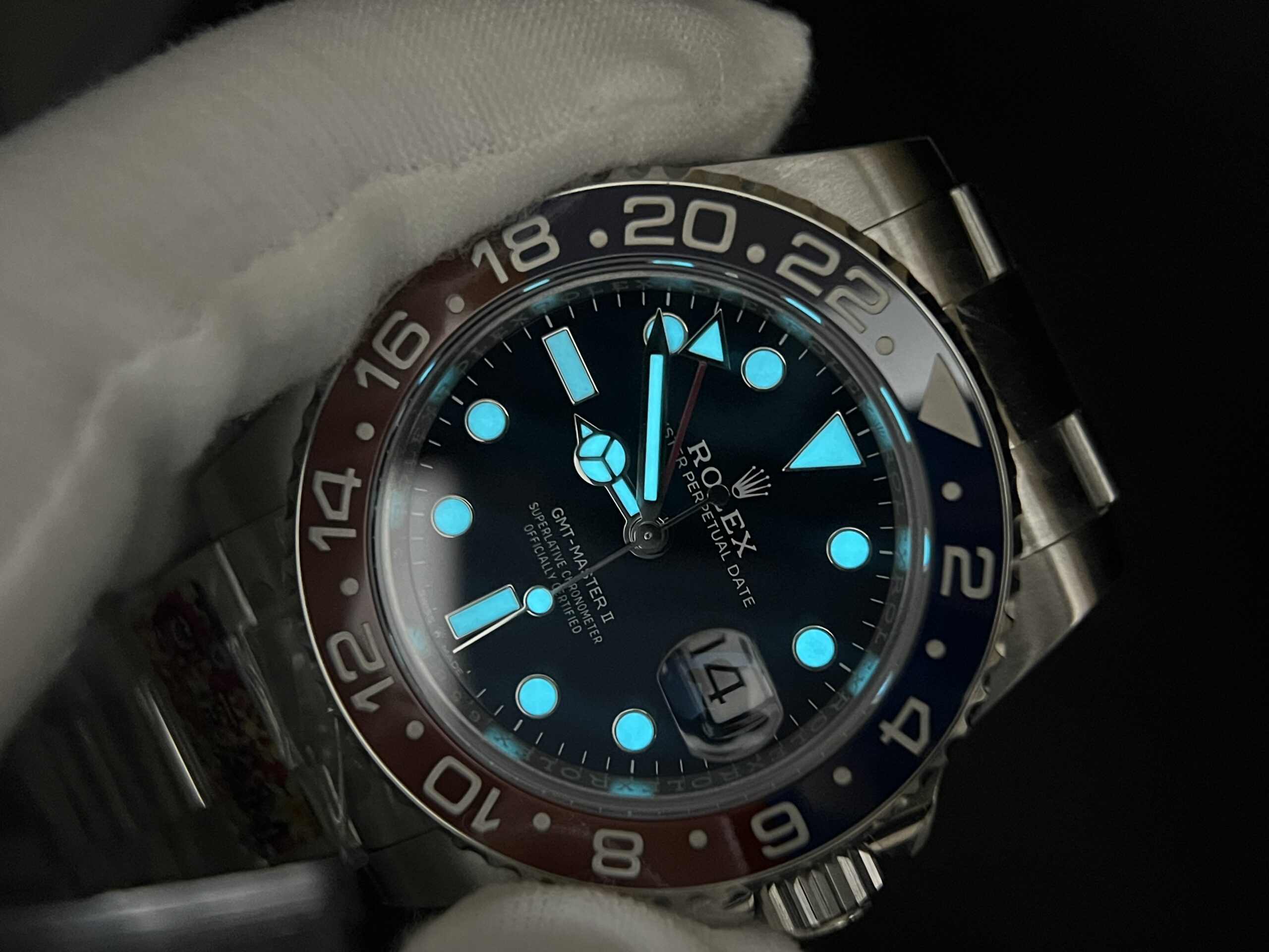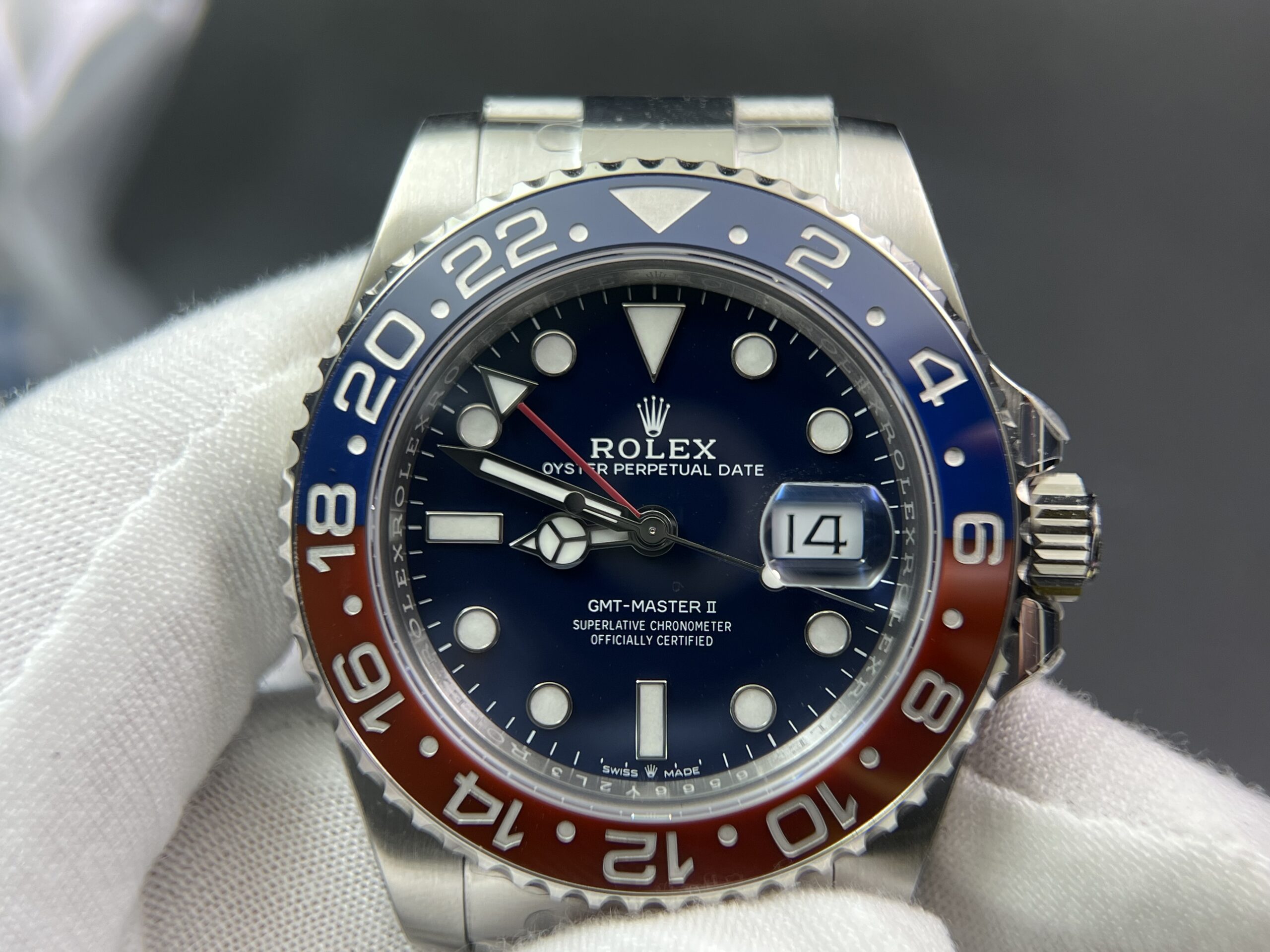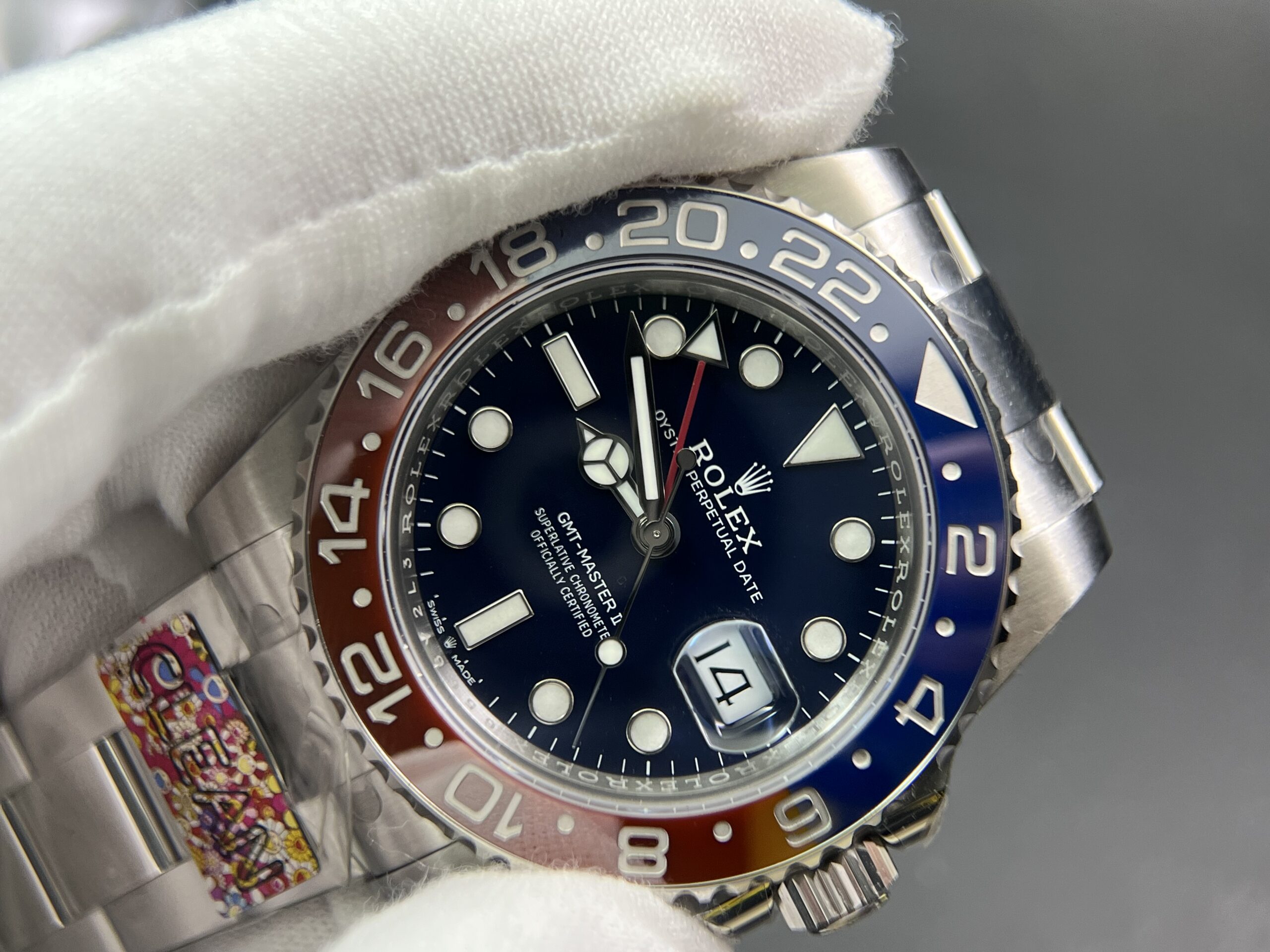 Bezel: Red/Blue Ceramic Bezel with Platinum coated numerals (CF Newest Version Pepsi Bezel)